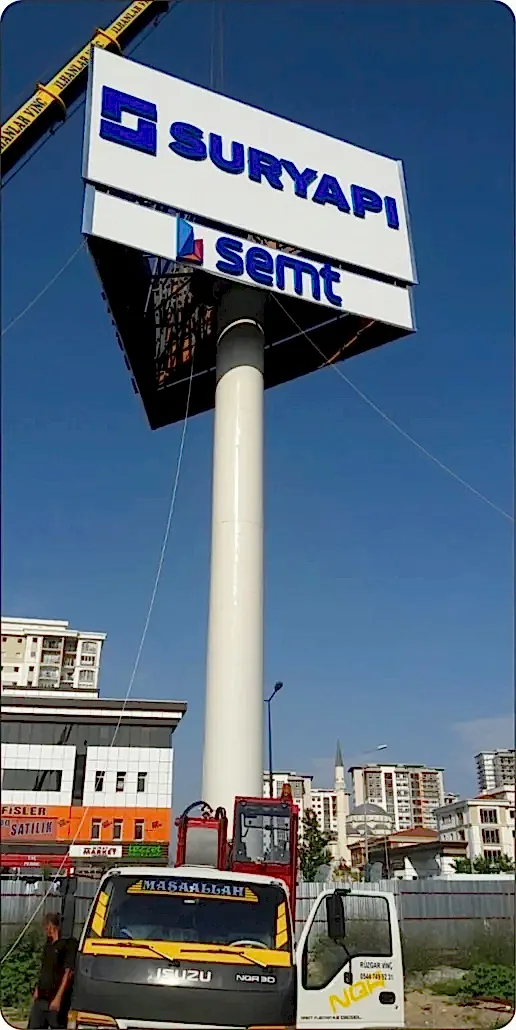 - Yuvarlak Totem Tabela: Bu totem tabela şekli, özellikle daha yumuşak bir görünüm sağlanabilmesi için tercih edilir. Genellikle park ve bahçe gibi alanlarında kullanılır.